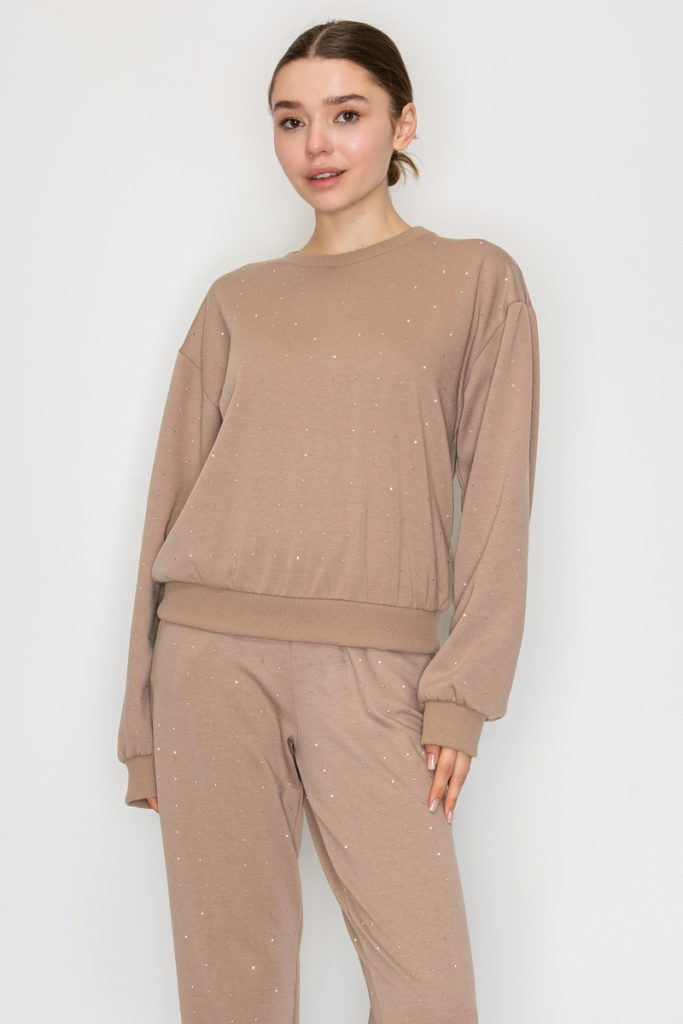 Rhinestones Round Neck Embellished Sweatshirt