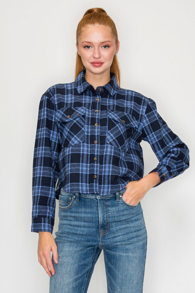 Plaid Boxy Button-Down Shirt Top