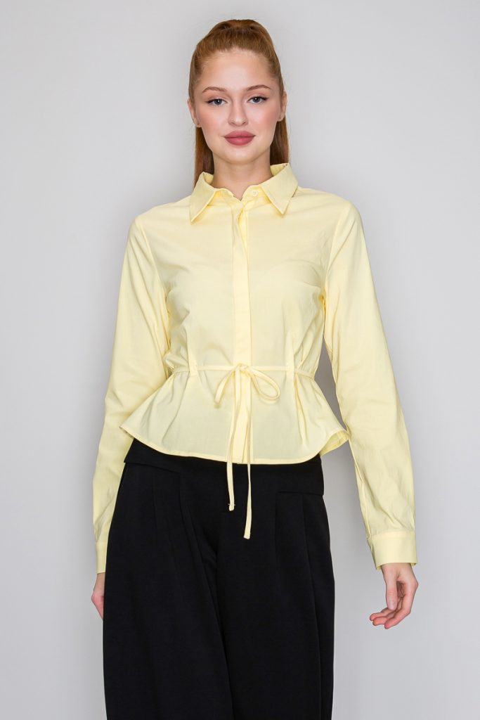 Collared Tie Waist Blouse